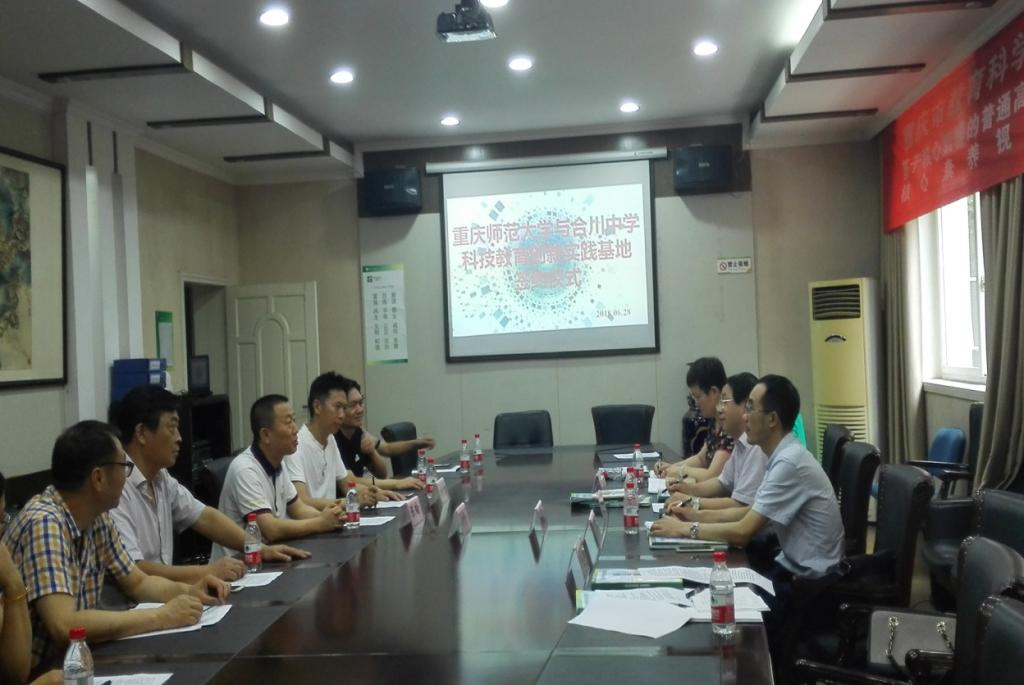 林长春院长介绍了我院科学教育专业的相关情况及我院优秀的科技教育人才队伍,提出服务和推动基础教育,是高校办学的任务和职责之一,希望双方在各种竞赛、科技校本课程的开发、教学研究、学术发展、科技创新活动等方面加大合作力度,并争取在2-3年内作出一定的成绩;同时,也希望以此次科技创新实践基地建立为契机,加强与合川中学在科技创新、科学教育、研究生培养等方面的交流与合作,实现共建共赢。