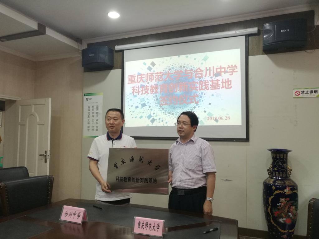 最后,林长春院长与陈瑜校长共同签署了重庆师范大学实践基地协议书,并为基地授牌。