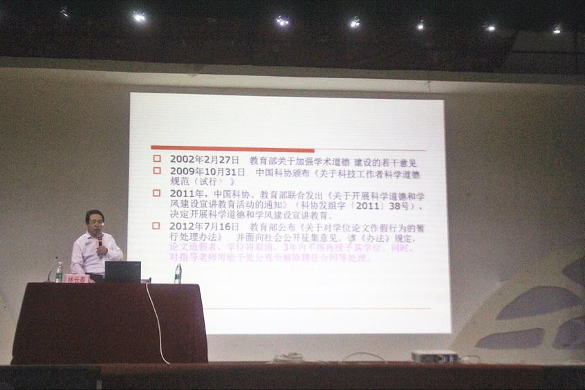 林院长在讲校园加强科学道德和学风建设的重要性时,分别从三个方面着重强调:一是提高高校人才培养质量;二是提升高校科学研究水平和服务社会的能力;三是满足高校文化传承创新的迫切需要。