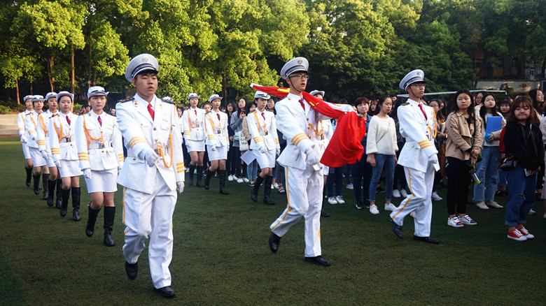 2018年3月5日早上7:40,伴随着庄严的音乐,我院全体师生昂首挺胸,整齐地站在了学院的足球场上,等待即将到来的升旗仪式。“嗒、嗒、嗒、嗒”,由三名旗手领头的国旗班成员们身着白色服装,踏着整齐的步伐,挺拔矫健的身影出现在大家的视线之中。大家专注的目光紧跟着他们:齐步走、立定、齐步转正步。他们一步一步接近升旗台,即将升起属于初教院的五星红旗!