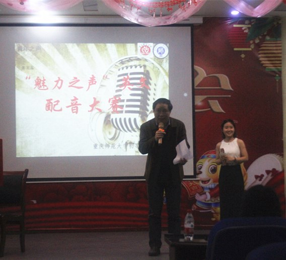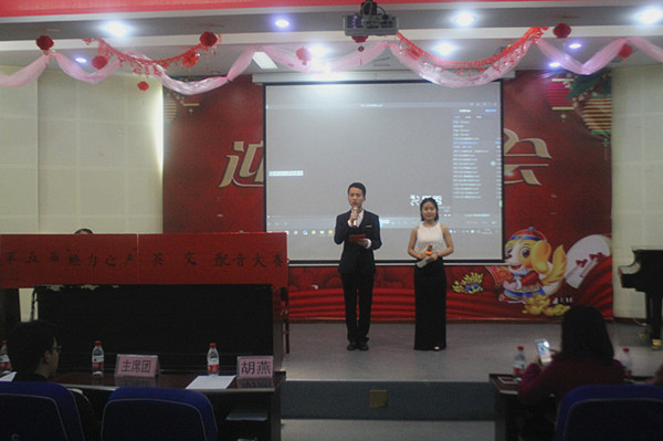 2018年3月27日19:50,828-365.com学生社团联合会EZ英语社团组织的第五届“魅力之声”英语配音大赛揭开了它的神秘面纱。为了增加此次比赛的专业性和公平性,特邀熊志明老师、王贵菊老师、张德玲老师作为评委老师,同时还有有班级代表组成的大众评审团为选手们现场打分,我院团学干部们都到场观看此次比赛。